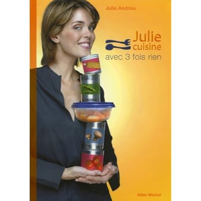 " Julie cuisine avec 3 fois rien ", c'est avant tout une nouvelle façon de cuisiner, ou l'art de réinventer les classiques, pour une cuisine créative, maligne et de qualité! Comme dans son émission " Julie cuisine ", Julie Andrieu propose des idées toutes simples pour épater vos proches au quotidien. Un livre plein d'astuces et d'images à croquer... 39 recettes originales pour prendre plaisir à inventer des plats sans aller faire son marché risotto au champagne, soufflé d'après-dîner, parmentier de cabillaud aux olives, neufs brouillés aux gésiers et aux champignons, sombre banane, crème brûlée aux figues... " La modestie des moyens, qu'ils soient alimentaires ou techniques, a toujours été source de dépassement et de créativité. [..] Je prends un malin plaisir à cuisiner sans être allée faire les courses, conjuguant ce qu'il me reste dans mes placards, mon réfrigérateur et mon congélateur. " Julie AndrieuBroché=90 pages. Editeur =Albin Michel (1 mars 2006). Collection =Julie cuisine .... Langue =Français. ISBN-10=2226168826. ISBN-13=978-2226168825. Dimensions du produit=28,5 x 1 x 20 cm. Moyenne des commentaires client =Soyez la première personne à écrire un commentaire sur cet article. Classement des meilleures ventes d'AmazonCuisine rapide=886.705 en Livres (Voir les 100 premiers en Livres) .zg_hrsr { margin: 0; padding: 0; list-style-type: none; } .zg_hrsr_item { margin: 0 0 0 10px; } .zg_hrsr_rank { display: inline-block; width: 80px; text-align: right; } n°489 dans Livres > Cuisine et Vins > Cuisine au quotidien >.